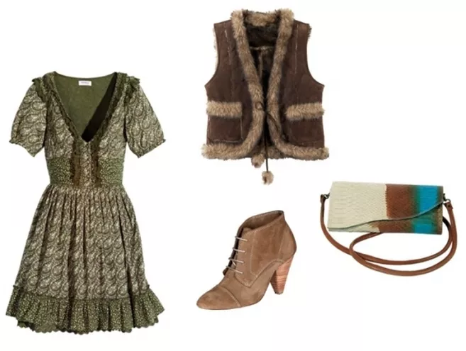 Spodnie dzwony, długie spódnice, futrzane płaszcze, skórzane kurtki i szorty w kolorze zgaszonej musztardy i bordo. Nieodzowne są też sukienki z lekkich tkanin, koszule z nadrukami w wielkie kwiaty, nieregularne paski lub ciemną kratkę.