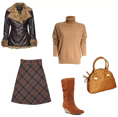 spódnica Bialcon 145 zł, torebka Venezia, golf H&M, kozaki Vagabond 499 zł, kurtka New Yorker 229 zł