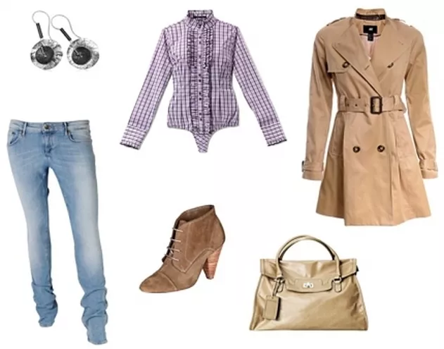 body Resereved 99,90 zł, botki Pull&Bear, dżinsy H&M 149 zł, kolczyki Yes, torebka H&M, trencz H&M