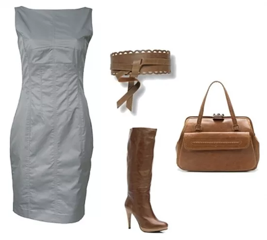 sukienka Top Secret, pasek Orsay 39,90 zł, torebka Zara, kozaki Kazar
