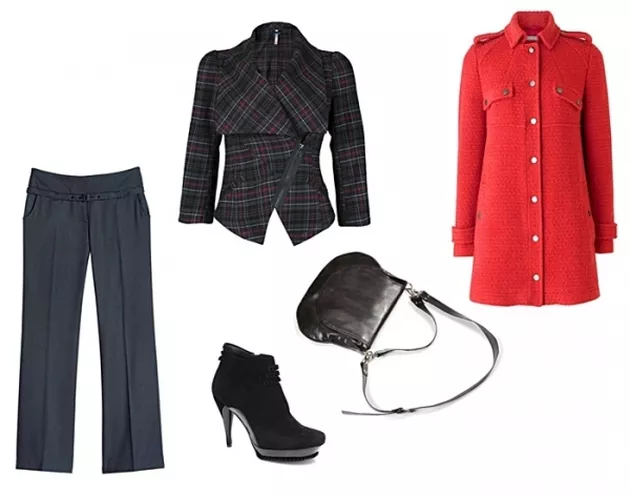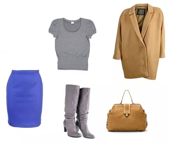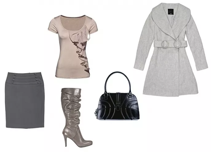 spódnica Carry 149,99 zł, bluzka New Yorker 54,95 zł, kozaki Venezia, płaszcz Carry 499,99 zł, torebka Ochnik 559,90 zł