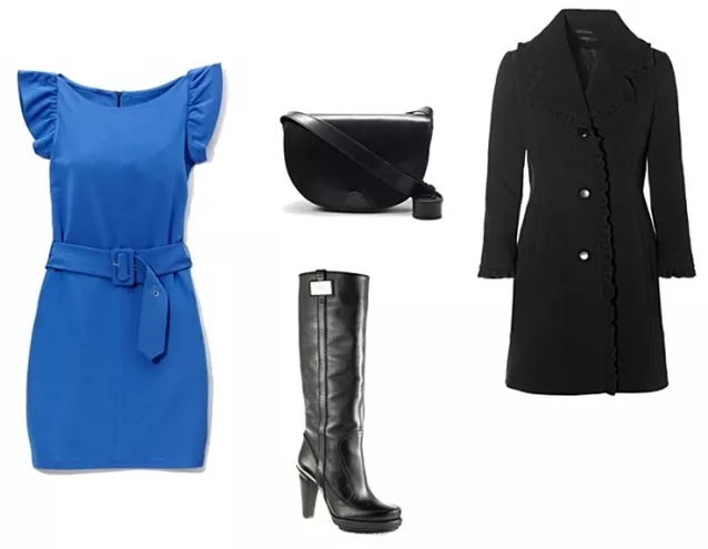 sukienka Mohito 99,90 zł, kozaki Salamander, płaszcz KappAhl, torebka Zara