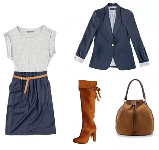 sukienka Pull&Bear, żakiet Zara, kozaki Venezia, torebka Zara
