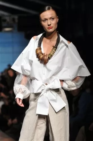 W sezonie lato 2011 tkaniny zyskują jeszcze większą, niż to było dotychczas, subtelność, lekkość i delikatność. Na szczególną uwagę zasługują jedwabie o miękkim, aksamitnym wykończeniu (satyny, szyfony i tkaniny z połyskującym wykończeniem hi-tech). Swobodne formy tunik, zwiewnych spódnic i sukienek są nową definicją letniej elegancji. Dopełnieniem ubiorów jest bogata kolekcja futurystycznej biżuterii w rozmiarze XXL.