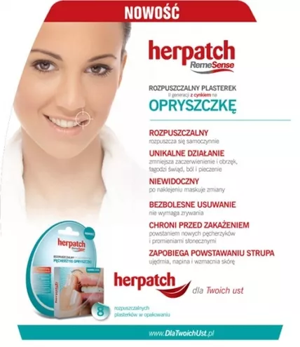 Produkt wyróżniający się nie tylko składem, ale przede wszystkim sposobem działania budzi duże zainteresowanie środowiska medycznego i naukowego. Herpatch Remesense rozpuszczając się samoczynnie pod wpływem wilgoci łagodzi ból towarzyszący opryszczce. Rozpuszczając się na wardze, nie uszkadza pęcherzyka opryszczki eliminując tym samym nieprzyjemne uczucie, które towarzyszy odklejaniu tradycyjnych plasterków.