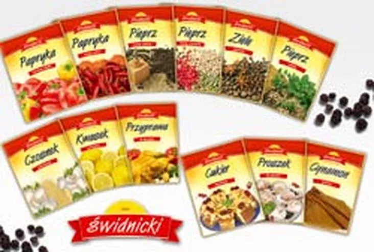 Każda przyprawa z oferty Świdnicki, podobnie jak sztandarowy produkt firmy - Majonez Świdnicki - ma w sobie nutkę staropolskości. Jest idealnym dodatkiem do tradycyjnych potraw, ale wzbogaci smakowo także nowoczesne potrawy, które z pasją pichcą młode panie domu. Zwłaszcza te sięgające po inspiracje do kuchni innych narodów. Konfekcjonowane przez M&J przyprawy pochodzą z całego świata. Przyprawiając nimi możesz być pewna, że wnosisz do domu cząstkę Austrii, Brazylii, Chin, Hiszpanii, Indii, Szwajcarii, Turcji, Wietnamu i Czech.W ofercie Świdnicki znajdziesz przyprawy:Przyprawy sypkie Świdnicki: Czosnek granulowany, Kwasek cytrynowy 20g, Liść laurowy 7g, Majeranek otarty 7g, Papryka ostra mielona 20g, Papryka słodka mielona 20g, Pieprz czarny mielony 20g, Pieprz czarny ziarnisty 20g, Pieprz ziołowy 20g, Przyprawa do kurczaka 20g, Ziele angielskie 15g. Przyprawy cukiernicze: Cukier waniliowy 32g, Cynamon mielony 20g, Proszek do pieczenia 36g, Soda oczyszczona 40g, Żelatyna 40 g, Przyprawa warzywna – 200g