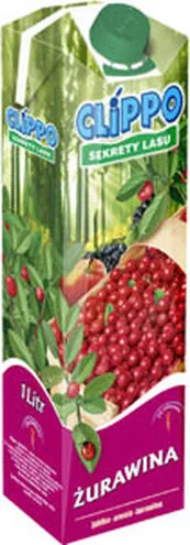 Clippo Sekrety Lasu: "Żurawina" - Napój jabłkowo - aroniowo - żurawinowyOwoce żurawiny to gratka dla prawdziwych smakoszy. Może dlatego, że zrywane są po pierwszych przymrozkach? W czasie zimy dojrzewają, nabierając niepowtarzalnego, lekko kwaśnego smaku,tak urzekającego amatorów żurawiny. Jest wyśmienitym źródłem żelaza i sprawdza się jako naturalny antybiotyk. Chroni nasz organizm przed infekcjami, doskonale wpływa na pracę serca i układu krążenia. Żurawina lubi jednak chronić swoje tajemnice przed ciekawskimi. Rośniew trudno dostępnych bagiennych miejscach w borachi lasach, stąd zerwanie jej owoców to nie lada sztuka.Na szczęście od dziś amatorzy cierpkiego smaku żurawiny mogą odkryć jej sekret dużo łatwiej. Wystarczy sięgnąć po niepowtarzalny w smaku napój Clippo Sekrety Lasu: "Żurawina"!