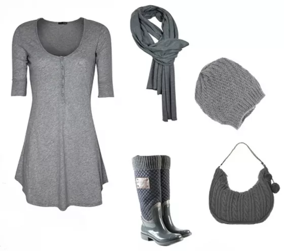 kalosze Venezia369 zł, sukienka Bobi, torebka Marks&Spencer, szal Bobi, czapka Marks&Spencer