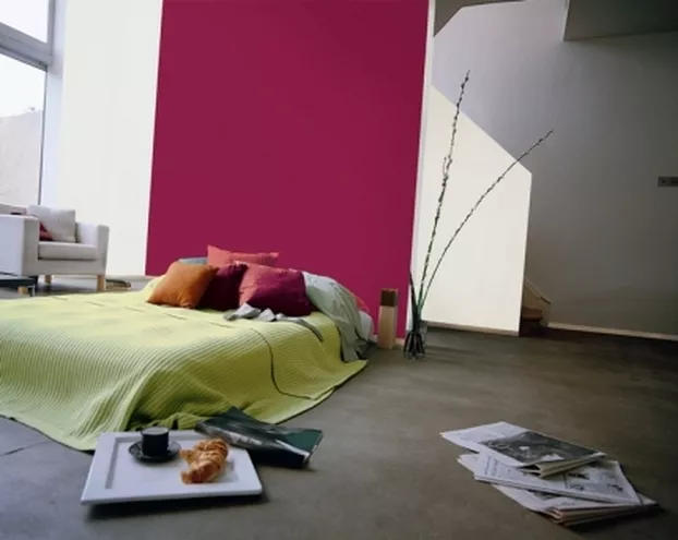 Odważniejsze osoby mogą odwrócić proporcje. Wtedy to, ściany możemy pomalować w czerwieniach, różach bądź fioletach, natomiast elementy wyposażenia: tkaniny, zasłony, poduszki komponować w kolorze niebieskim oraz limonkowym. Uzyskany w ten sposób efekt polecałbym rezerwować dla sypialni, gdzie temperatura uczuć powinna być najgorętsza.
