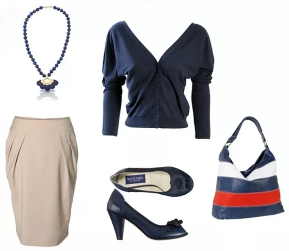 torebka Gino Rossi 449 zł, spódnica Bolero, kardigan Stefanel, naszyjnik Tous 2525 zł, czółenka Wittchen 539 zł