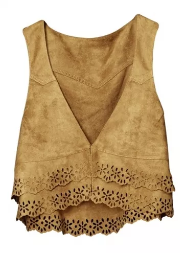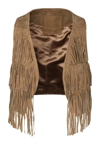 Kamizelka szczególnie sprawdzi się jako dodatek do długiej, kraciastej koszuli w stylu country, ale również do zwiewnej, falbaniastej sukienki w stylu lat 70. Będzie także modnym dodatkiem do spodni z szerokimi nogawkami, które królują w zbliżającym się sezonie modowym.
