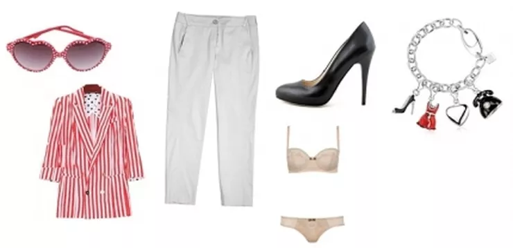 okulary Tally Weijil, czółenka Prima Moda, spodnie Bialcon, marynarka Romwe, bransoletka Yes, bielizna Intimissimi