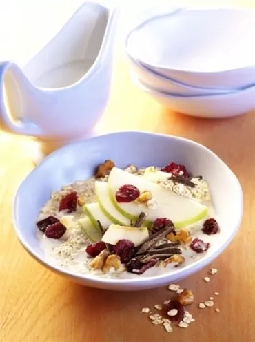 Na godzinę przed spożyciem płatki owsiane zalej przegotowaną wodą. Następnie dodaj mleko, cukier (my proponujemy zastąpić go miodem) i grubo utarte, razem ze skórką jabłko. Na koniec wyciśnij sok z cytryny i surówka gotowa.