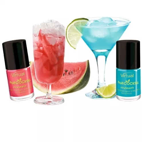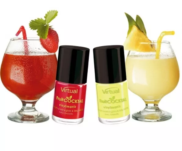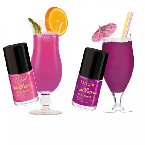 Najnowszą kolekcję letnich lakierów marki Virtual tworzą emalie w 10 oryginalnych odcieniach. Wyjątkowo soczyste kolory nawiązują do orzeźwiających owocowych koktajli: zielono-kwaśne kiwi, różowo-cierpki grejpfrut, soczyście-leśna jagoda, błyszcząca świeżością truskawka, słodki arbuz oraz ostra żurawina.
