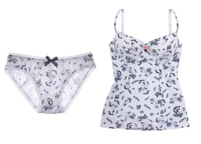 Pomimo odważnego tematu kolekcja charakteryzuje się dyskrecją. Gdy pierwszy raz zobaczyłam piżamkę z tej serii pomyślałam: idealne rozwiązanie na lato; biała z delikatnymi granatowymi printami, wzbogacona koronką i kokardkami…