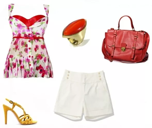 bluzka Elisabetta Franchi Celyn B, szorty Mohito, pierścionek New Yorker 22,95 zł, sandały Zara 89,90 zł