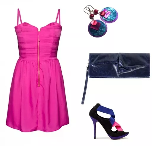 sukienka New Yorker 59,95 zł, kopertówka Gino Rossi 249 zł, kolczyki Pakamera.pl 34 zł, sandały Zara 329 zł