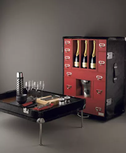 Krug jako jedyny wśród największych domów szampańskich dokonuje procesu fermentacji win w małych dębowych beczkach. Dzięki tej tradycyjnej metodzie szampan Krug uzyskuje wyjątkową długowieczność. Jak mówią znawcy szampana: „Nigdy nie zapomnisz pierwszego razu, kiedy kosztowałeś szampana Krug”.Jego degustacja to niekończąca się niespodzianka – jest intensywny i ekscytujący, dlatego ciągle wybierany przez krytyków oraz znawców najlepszych win i wyrafinowanych koneserów. Charakteryzuje go aromat dojrzałych owoców z miodową nutą, produkowany jest z gron: Pinot Noir, Chardonnay i Pinot Meunier, ma doskonale zrównoważony smak. Idealny jako aperitif a także towarzysz wykwintnych dań z owoców morza i skorupiaków. Dla osób, które pragną zabrać go również na romantyczny piknik, kolację w plenerze czy też biznesowe spotkanie na otwartej przestrzeni, marka Krug przygotowała coś specjalnego. We współpracy ze światowej sławy producentem luksusowych kufrów, firmą Pinel&Pinel, zaprojektowała wyrafinowany zestaw specjalnych, ekskluzywnych walizek, które wyposażono we wszystkie niezbędne akcesoria, potrzebne podczas tych wyjątkowych okazji. Jest to limitowana kolekcja jedynie 30 egzemplarzy, stanowiąca nieodłączny atrybut wyrafinowanego konesera i miłośnika wykwintnego szampana Krug. Krug Trunk to innowacyjna koncepcja połączenia doskonałej jakości materiałów z wygodą i funkcjonalnością. Walizka wykończona jest w ciemnobrązowej, cielęcej skórze, z nieoksydowanymi obiciami zabezpieczającymi przed zniszczeniem podczas podróży. Na przedzie znajduje się niklowany napis „Krug”, pod którym możliwe jest umieszczenie danych właściciela. Aby całości dodać jeszcze większej klasy i stylu, do wymoszczenia wnętrza użyto delikatnej cielęcej skóry, o żywej czerwonej barwie, która doskonale podkreśla królewski charakter wyjątkowego szampana Krug. Środek kufra zaprojektowano z dbałością o najmniejszy szczegół - perfekcyjnie dopasowane szufladki, drobne zamknięcia i przepiękne detale tworzą wspaniałą całość. Na wyposażeniu tej wyjątkowej walizki znajdują się wszystkie niezbędne akcesoria: od zaprojektowanego przez Fronçois Bauchet’a, ekskluzywnego coolera, poprzez wykonane z najszlachetniejszego szkła kielichy, eleganckie talerze i miseczki, do przepięknego, pokrytego masą perłową zestawu sztućców. Drzwi walizki mogą zostać zdjęte z uchwytów i wykorzystane jako wytworny stolik wyściełany kaszmirem i wyłożony egzotycznym drewnem.Jeden egzemplarz wart jest jedyne 35.000 euro.