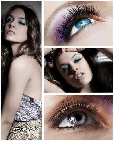 Szlachetne tło dla przedłużonych rzęs może stanowić makijaż powiek w odcieniu turkusowym lub ametystowym. Błękit najlepiej koresponduje z jasną karnacją, a jego chłodny charakter sprawia, że spojrzenie wygląda na wypoczęte i nabiera blasku. Fiolet można złagodzić odcieniem brzoskwiniowym, dzięki czemu stylizacja staje się cieplejsza i bardziej miękka. Cienie nie mogą się odcinać - zawsze tworzymy efekt smoky eye.