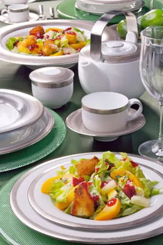 Te z nas, które nie mają możliwości przygotowania kolacji na świeżym powietrzu, również mogą pozytywnie zaskoczyć swojego ukochanego. Smaczna i gustownie podana kolacja we własnym salonie może także być zupełnie wyjątkowa. Wystarczy tylko wybrać efektowną zastawę i odpowiednio dobrać dodatki. Wyjątkowo elegancką oprawę stworzysz dzięki porcelanowej zastawie z kolekcji Plus Platin marki Villa Italia. Kolekcja wykonana jest z najwyższej jakości białej porcelany, wykończonej platynowym zdobieniem. Charakterystycznymi elementami, stanowiącymi o wyjątkowości tej kolekcji są nowoczesne i modne szerokie skrzydła talerzy, praktyczne, głębokie spodki pod filiżanki oraz unikalna stalowa rączka czajnika. Z bielą porcelany przepięknie będzie się komponować barwny obrus, np. z kolekcji Smart Olive w jasnym odcieniu zieleni. Nie zapomnij o kieliszkach do wina. W ofercie marki Villa Italia masz do wyboru kilka niezwykłych kolekcji szkła kryształowego, utwardzanego tytanem. Do nowoczesnej zastawy świetnie będą pasować kieliszki z nowej kolekcji Chiara, o wysmukłych, ciężkich nóżkach. Niepowtarzalny klimat romantycznej kolacji stworzy blask świec, które niezwykle gustownie będą wyglądać w kryształowych świecznikach z kolekcji Lyon. W zależności od fantazji i upodobania możesz wybrać świeczniki jedno-, dwu- lub trójramienne.Nie od dziś wiadomo że najkrótsza droga do serca mężczyzny wiedzie przez żołądek. Przepis na pyszne lekkie danie znajdziesz w każdej kobiecej gazecie lub na portalach tematycznych Romantyczna kolacja, na którą zaprosisz swego ukochanego powinna być nie tylko smaczna ale również gustownie i elegancko podana. Dekorując stół zastawą oraz dodatkami marki Villa Italia masz pewność, że wieczór będzie miał wyjątkową oprawę.