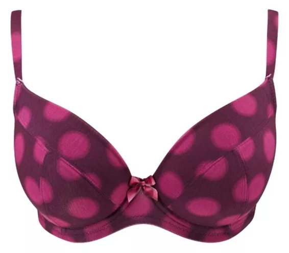 Molly to nowość kolekcji Cleo w wersji plunge. Usztywniane miseczki oferują komfort i podtrzymanie aż do rozmiaru H. Rozmyte kropki w śliwkowo-jagodowym kolorze dają subtelny i jednocześnie radosny wygląd.