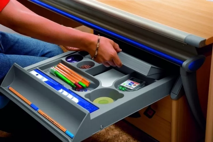 Kiedy nasze dziecko zaczyna zerówkę, a często jeszcze wcześniej, w jego pokoju zaczyna panować specyficzny rodzaj bałaganu. Jednym z koszmarów każdego rodzica jest przyklejona do dywanu plastelina, porozrzucane kredki i rozlane farbki. W takiej sytuacji na pomoc przychodzą nam różnego rodzaju pudełka i pojemniki. Ciekawym rozwiązaniem mogą być kolorowe kontenery oraz dodatkowe przegródki w szufladach biurka. – Kupując meble dla dziecka pamiętajmy, że dla wygody i łatwiejszego utrzymania porządku najlepsze są te z dużą liczbą dodatkowych szuflad i półek – podpowiada Olga Koźlik, specjalista ds. wyposażeń wnętrz, współpracująca z firmą Moll, producentem zestawów biurkowych – Każda skrytka to atrakcja dla małego odkrywcy, a dla rodzica kolejny sposób na uniknięcie bałaganu.