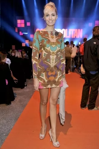 Krótka, wielobarwna sukienka, którą wybrała Agnieszka Popielewicz na Galę Cosmopolitan nawiązuje do kreacji Twiggy z wczesnych lat 70-tych. Bawełniana satyna sprowadzona z Włoch przykuwa uwagę charakterystycznym wzorem - kluczowym dla kolekcji. Matowa faktura tkaniny sprawia, że w zależności od dodatków sukienka zrobi wrażenie zarówno w dzień, jak i na wieczornym wyjściu. Natalia Jaroszewska słynie z projektów sukienek, które jednocześnie są kobiece i bezpretensjonalne.
