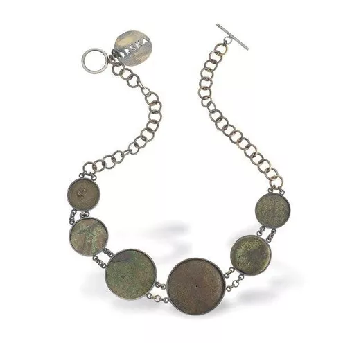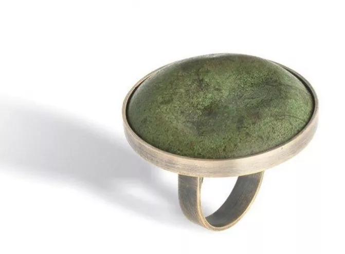 Anna Orska przywróciła do użytku guziki odprute, znalezione, zakopane. Dzięki temu co przeszły i ile czekały na swój powrót, wszystkie wgniecenia, dziurki i rdza stały się zaletami. Wystarczyło odpowiednio je oprawić, zalać, przytwierdzić aby powstała piękna i unikalna biżuteria z klimatem.