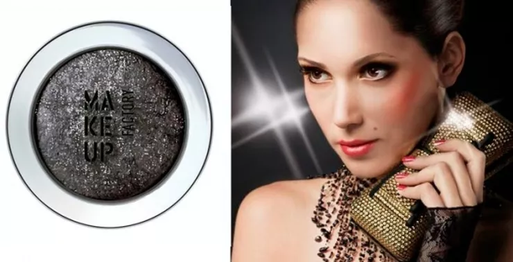 Prasowany cień do powiek. Jego niepozorny, grafitowy kolor kryje w sobie tysiące srebrnych, połyskujących w świetle drobinek, dzięki czemu pozwala stworzyć idealny makijaż wieczorowy, w sam raz na karnawałowe szaleństwa.