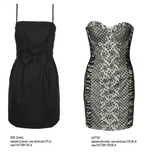 Dla odważnych proponujemy cekinową sukienkę lub top! Duży wybór karnawałowych kreacji znajdziecie w sklepie Reserved. Koronkowa sukienka, a może mała czarna z dodatkiem złotej biżuterii? Osoby, które preferują eleganckie sukienki, znajdą je w sklepach Sottie oraz Pepe Jeans.