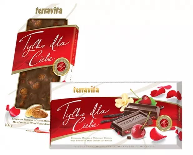 Na Walentynki Terravita oferuje wyjątkową ofertę „Tylko dla Ciebie”, zawierającą słodycze w okazjonalnej szacie graficznej. Są w niej propozycje na słodki prezent – linia czekolad w romantycznym opakowaniu i dedykacją „Tylko dla Ciebie”: