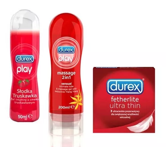 Po kolacji, czas na budujący intymny nastrój relaks o zapachu uwodzicielskiej nuty afrodyzjakalnego kwiatu Ylang Ylang, czyli masaż z użyciem zmysłowego żelu Durex Play 2w1. Dzięki swojemu delikatnemu zapachowi i pobudzającej formule, pozwoli on spotęgować rozkoszne doznania obojga partnerów. Jeśli po tak miłym wstępie najdzie was chęć na pyszny deser, który zapewni moc soczystych i owocowych doznań, koniecznie wypróbujcie żel intymny Durex Play Słodka Truskawka, który jeszcze mocniej rozpali wszystkie zmysły. Gdy już całe ciała obojga uczestników miłosnych igraszek będą cudownie zrelaksowane i spragnione jeszcze większej bliskości – można pozwolić sobie na bardziej wyrafinowane pieszczoty.