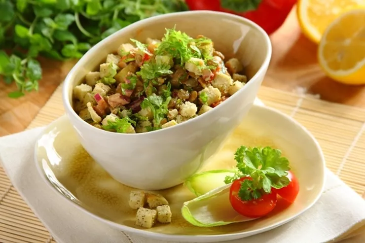 Soczyste pomidory, chrupiąca kapusta pekińska, złocista kukurydza, ostra cebula, ogórki, kawałki mięciutkiego kurczaka, a wszystko skąpane w pysznym sosie paprykowo-ziołowym i posypane grzankami o smaku czosnkowym– oto propozycja na rozpoczęcie sezonu sałatkowego!
