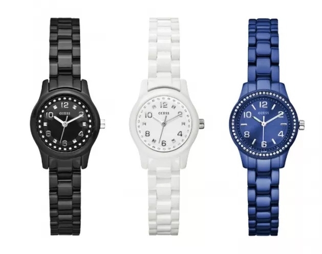 Delikatną, wręcz minimalistyczną kolekcję zegarków o nazwie MINI MANIA proponuje dom mody Guess. Designerzy marki potraktowali minimalizm bardzo dosłownie, na każdej płaszczyźnie. Zegarki bowiem nie tylko odróżniają się maleńkimi kopertami (ok. 25 mm średnicy), ale również super lekkim, aluminiowym lub polikarbonowym wykonaniem. Przy tym zachowują czytelność – świetnie wykonana tarcza oraz modny, wiosenny „look”. Jak zawsze nie brakuje kobiecego, połyskującego akcentu – kryształów wokół tarczy. Minimalizm zegarków pozwala na noszenie ich również jako bransoletki w zestawie 2-3 sztuki na jednym nadgarstku.