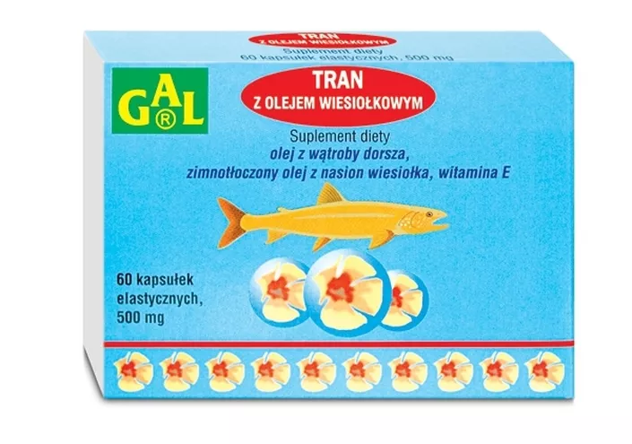 TRAN Z OLEJEM WIESIOŁKOWYM firmy GAL pozwoli nam cieszyć się doskonałym zdrowiem i urodą przez długie lata. Preparat jest dostępny w formie kapsułek, zawierających olej z wątroby dorsza (Gadus morhua) i olej z nasion wiesiołka.