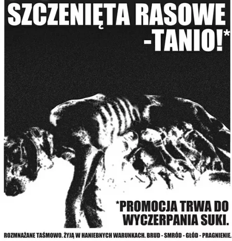 Chociaż nielegalny handel zwierzętami to przestępstwo, za które grozi kara ograniczenia wolności lub grzywna do 5 tys. zł, to psie podziemie nadal kwitnie i ma się dobrze. Tylko otwarte społeczne napiętnowanie takich osób i przede wszystkim zaprzestanie kupowania zwierząt z pseudohodowli może ukrócić ten proceder, zgodnie z zasadą: mniejszy popyt-mniejsza produkcja.