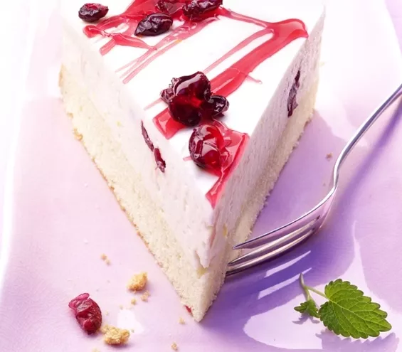 Zagęszczacz do polew i mas Tortenguss rozprowadzić sokiem z cranberries według przepisu na opakowaniu. Odstawić do ostygnięcia. Cranberries wyłożyć na cytrynową śmietanę, na to wlać zagęszczony sok. Przed podaniem tort chłodzić przez 30 minut.