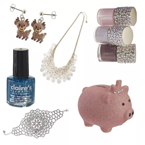 Kolekcja dodatków, biżuterii i kosmetyków, które doskonale nadają się na prezent dla bliskiej osoby. W kolekcji marki Claire’s znaleźć można między innymi romantyczne naszyjniki i bransoletki wykonane z mieniących się niczym śnieg kryształków, które doskonale współgrają w komplecie z modnymi wiszącymi kolczykami w różnych kolorach. Specjalna świąteczna kolekcja zawiera także kolczyki i wisiorki w kształcie reniferów, płatków śniegowych, a także mikołajków!