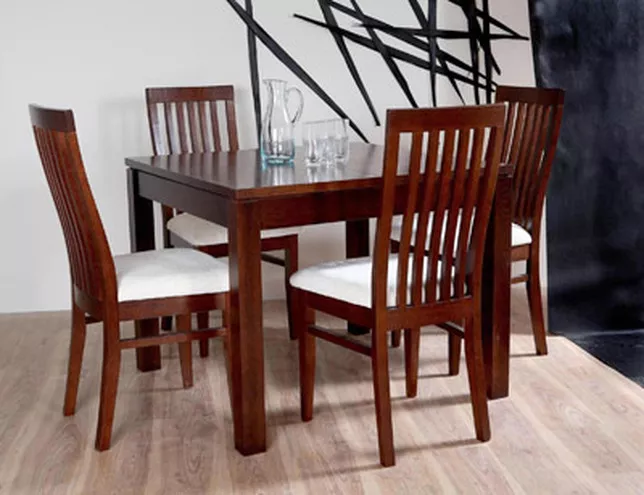 W naszym codziennym zabieganiu pory posiłków to jedne z niewielu chwil, kiedy możemy cieszyć się wspólnym przebywaniem z rodziną. Jadalnia czy tez jadalny aneks w salonie lub kuchni staje się przez to miejscem niezwykle ważnym – warto więc nadać mu wyjątkowy charakter. Zestaw mebli SPARTAN firmy Gawin to propozycja dla tych, którzy, poza doskonałością i precyzją wykonania, cenią sobie niepowtarzalny urok naturalnego materiału, zamknięty w eleganckiej, niezwykle gustownej formie. Meble SPARTAN zadziwiają swą urodą. Wykonane z naturalnego drewna – dębowego lub bukowego – harmonijnie łączą oszczędną, minimalistyczną w formie linię wzorniczą z perfekcyjnym wykorzystaniem naturalnych surowców. Głęboki, intensywny brąz drewna z subtelnie zarysowanym rysunkiem słojów stanowi idealny kontrast dla obić siedzisk, wykonanych z tkanin utrzymanych w przytłumionym odcieniu subtelnej bieli. To klasyczne zestawienie nadaje meblom lekki posmak wyszukanej elegancji. Luksusowy w wyglądzie zestaw to także esencja wygody – wysokie, ergonomicznie wyprofilowane oparcia zapewnią nam i naszym gościom niezapomniany komfort siedzenia.Ograniczenie używanej na co dzień powierzchni mieszkania nie będzie przeszkodą – składany stół zajmuje niewiele miejsca, z powodzeniem zapewniając komfort czterem osobom, natomiast po rozłożeniu stanie się ośrodkiem nawet dużych przyjęć. Meble doskonale wkomponują się nawet w niewielkie wnętrze – będą doskonałym rozwiązaniem dla niedużych mieszkań, dobrze skomponują się z salonowym aneksem i nie przytłoczą niewielkiej jadalni. Zestaw ten docenią zarówno wielbiciele nowoczesnego designu, jak i zwolennicy bardziej tradycyjnych rozwiązań – idealnie zgrają się z wnętrzami o różnym wystroju. Dzięki nim miejsce posiłków i spotkań w rodzinnym gronie stanie się pomieszczeniem nie tylko funkcjonalnym, lecz przede wszystkim – cieszącym oko i zapadającym w pamięć. Będzie sprzyjać dobrym nastrojom domowników i wzbudzać podziw wśród gości. Zestaw SPARTAN (stół + 4 krzesła) – cena ok. 1775 zł.