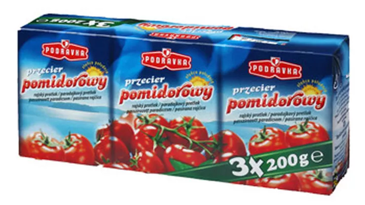 Firma Podravka wprowadza na rynek produkt, który przygotowano korzystając z doświadczenia wielu rodzin w codziennym przyrządzaniu obiadów. Nowy Przecier pomidorowy sprzedawany jest w opakowaniu 3 x 200 gram. Pojemność ta została dobrana tak, aby jeden kartonik przecieru wystarczał na ugotowanie obiadu dla dwóch – trzech osób, np. rodziny z dzieckiem. Gdy gotujemy obiad dla większego grona wystarczy sięgnąć po drugie, a nawet trzecie opakowanie produktu. Zastosowanie Przecieru pomidorowego Podravki jest na tyle łatwe i uniwersalne, że powinien on znaleźć swoje stałe miejsce w kuchni każdej gospodyni. Nowy produkt Podravki może bowiem stanowić składnik dań wywodzących się z wielu kuchni świata. Przecieru używa się do przyrządzania takich potraw, jak: polska zupa pomidorowa, hiszpańskie gazpacho, włoski sos bolognese do spaghetti, węgierski gulasz, sos do pizzy, różnego rodzaju zapiekanki, lasagne czy tortille, ciepłe i zimne sosy do warzyw oraz przekąsek. Przecier pomidorowy Podravki powstał ze świeżych i odpowiednio wyselekcjonowanych pomidorów dojrzewających w śródziemnomorskim klimacie. Ten naturalny przecier nie zawiera dodatków konserwujących. Jego trwałość oraz wysoką jakość gwarantuje staranny proces produkcji i pasteryzacja. Przecier pakowany jest do kartoników Tetra Pak, które chronią produkt przed światłem. Dzięki temu zachowuje on walory odżywcze i smakowe dłużej niż produkty przechowywane w tradycyjnych szklanych opakowaniach. Dostępność sprzedaży: Przecier pomidorowy Podravki oferowany jest w postaci trójpaku 3 x 200 g w sklepach spożywczych w całym kraju. Cena rekomendowana przez producenta to 2,49 zł brutto.