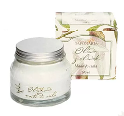 Taberna Saponaria w pierwszych dniach stycznia 2008 roku wprowadza na rynek wyjątkowy produkt Masło do ciała Oliwa z Oliwek.Masło do ciała powstało na bazie naturalnego masła oliwkowego oraz oliwy z oliwki europejskiej, czyli najlepszych składników dla pielęgnacji skóry. Produkt ma bardzo bogaty skład - aż 20% masy stanowi samo masło oliwkowe, które głęboko natłuszcza i zmiękcza skórę, a także łagodzi wszelkie podrażnienia. Ponadto masło zawiera naturalny olej z pestek winogron, olej z rośliny macadamia oraz naturalną witaminę E. Dobór odpowiednich, wysokiej jakości składników, pozwolił na uzyskanie produktu, który w użyciu jest bardzo wydajny, posiada właściwości odżywcze, regenerujące i intensywnie natłuszczające skórę. Nie powoduje podrażnień i doskonale koi skórę. Dodatkowo zapobiega przedwczesnemu procesowi starzenia się skóry.Masło do ciała z linii Oliwa z Oliwek firmy Taberna Saponaria polecane jest szczególnie do skóry suchej i wrażliwej, do stref ciała najbardziej narażonych na przesuszenie tj. kolana i łokcie.O bogactwie receptury masła świadczy jego gęsta konsystencja, która delikatnie „roztapia się” na skórze, dobrze wchłania, nie pozostawiając uczucia tłustości. Masło do ciała oferowane jest w słoiku z białego szkła, które może stać się ozdobą każdej kobiecej toaletki. Pojemność to 200 ml, a cena tylko 65 zł.W uzupełnieniu linii Oliwa z Oliwek firmy Taberna Saponaria znajdziemy:• Krem do twarzy Oliwa z oliwek, pojemność 50ml, cena 50 złKrem do twarzy przeznaczony do pielęgnacji każdego rodzaju skóry. Reguluje nawilżenie skóry, wygładza ją i chroni przed podrażnieniami. Zabezpiecza przed szkodliwym wpływem zanieczyszczonego środowiska, pobudza komórki do regeneracji i przeciwdziała starzeniu. Polecany jest szczególnie osobom wrażliwym na substancje zapachowe. Swoje pielęgnacyjne i regenerujące działanie zawdzięcza bogatym źródłom naturalnego kwasu oleinowego i linolowego oraz naturalnej witaminy E• Krem do rąk Oliwa z oliwek, pojemność 100 ml, cena 36 złKrem do rąk zawiera powstał na bazie surowców naturalnych, takich jak m.in.: olej z oliwek i masło oliwkowe, które natłuszczają i nawilżają skórę, czynią skórę aksamitną i bardziej elastyczną. Naturalna witamina E walczy z wolnymi rodnikami, przeciwdziała starzeniu się skóry na dłoniach. Krem zawiera również naturalny squalan, który swoim działaniem nawilża skórę, poprawia jej elastyczność, daje poczucie aksamitności. Krem zawiera unikalny składnik pochłaniający przykre zapachy, np. po krojeniu cebuli. • Krem do stóp Oliwa z oliwek, pojemność 100ml, cena 36 złKrem do stóp zawiera naturalne masło oliwkowe oraz oliwę z oliwki europejskiej , które delikatnie natłuszczają i pielęgnują skórę stóp. Krem łatwo się rozprowadza i dobrze wchłania. Allantoina i d-panthenol łagodzą podrażnienia, nawilżają, a także zapobiegają rogowaceniu naskórka.• Mydło Oliwa z oliwek, waga 100g, cena 18 złŁagodne dla skóry mydło na bazie naturalnej oliwy z oliwek. Mydło nawilża skórę i nie powoduje podrażnień.
