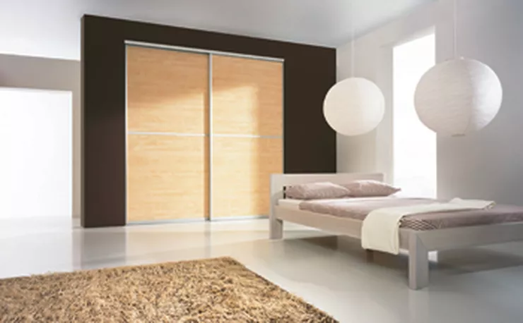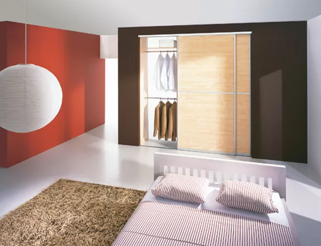 Sypialnia na piętrzeW projekcie każdego domu pomieszczenie przeznaczone na relaks i sen znajduje szczególne miejsce. Usytuowana z boku szlaków komunikacyjnych, sypialnia jest najbardziej osobistą przestrzenią domowników, oddającą w pełni ich indywidualny temperament. Niezależnie jednak od osobowości gospodarzy ta część domu winna charakteryzować się komfortowym i funkcjonalnym wnętrzem tak,by w jej obszarze spójnie połączyć zarówno wieczorny odpoczynek jak i poranny pośpiech mieszkańców. Za sprawą idealnie dopasowanego systemu zabudowy wnętrz Komandor sypialnia harmonijnie połączy estetykę przestrzeni relaksacyjnej z funkcjonalnością garderoby. W tym celu wystarczy wygospodarować odpowiednią powierzchnię na potrzeby szafy lub zamknąć wnękęjuż istniejącą. Struktura i pojemność zabudowy dobrana zostaje do indywidualnych potrzeb właścicieli - pełna swoboda w wyborze liczby oraz szerokości skrzydeł drzwi, także ilościi rodzajów półek czy szuflad. Drzwi przesuwane Komandor dzięki szerokiej gamie oferowanych wypełnień -takich jak: płyta meblowa, maty rattanowe, bambusowe, loom, szkło malowane lacobel, lacomat, szyba mleczna, lustra - poza podstawową funkcją stanowią również istotny element aranżacji wnętrza, poprzezmożliwość doboru kolorystyki skrzydeł do mebli, parkietu, paneli podłogowych. Ciekawe rozwiązania stwarza także możliwość łączenia różnego rodzaju wypełnień w jednym skrzydle drzwi np. szkła barwionego czy lustra oraz rattanu z płytą meblową. Dodatkowo aby do wnętrza szafy nie przedostawał się kurz na pionowej części ramy montowane są specjalne paski uszczelniające, które zapobiegają przedostaniu się kurzu do wnętrza, natomiast paski buforowe tłumią efekt uderzenia w ściankę boczną. Estetyczniei funkcjonalnie.