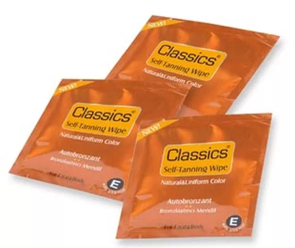 Teraz, dzięki chusteczkom samoopalającym marki Classics(, efekt skóry muśniętej słońcem jest zawsze w zasięgu ręki. Ten innowacyjny kosmetyk charakteryzuje się łatwą aplikacja, szybkimi efektami oraz, co najważniejsze, nadaje skórze efekt naturalnej opalenizny. Self-Tanning Wipes marki Classics( mają postać mięciutkiej chusteczki nasączonej substancją samoopalającą. Aby wyglądać jak po spotkaniu ze śródziemnomorskim słońcem, wystarczy przetrzeć nią twarz, szyję i dekolt. Taki sposób aplikacji umożliwia precyzyjne i równomiernenałożenie samoopalacza. Opalenizna uzyskana przy pomocy chusteczki Classics( jest zawsze jednolita i wolna od nieestetycznych smug. Produkt szybko się wchłania, a efekt widoczny jest już po trzech, czterech godzinach od aplikacji. Kosmetyk dopasowuje się do naszej karnacji, dzięki czemu uzyskana opalenizna jest zawsze naturalna.Praktyczne chusteczki Classics( pozwalają uzyskać efekt opalonej twarzy bez narażania skóry na szkodliwe promieniowanie i wysuszanie w solarium lub na słońcu. Dodatkowo, chusteczki wzbogacone są w witaminę E, którapielęgnuje i odżywia skórę twarzy, szyi i dekoltu. Możemy stosować kosmetyk regularnie, aby utrzymać lub pogłębić złocisty efekt, albo korzystać z niego tylko na "wielkie wyjścia". Bez powtarzania aplikacji piękny koloryt utrzymuje się około czterech dni. Kolejną zaletą produktu jest delikatny, przyjemny zapach.Innowacyjna formuła samoopalających chusteczek sprawia, że są niezastąpione podczas wyjazdów lub na chwilę przed wieczornym wyjściem. Przydadzą się zawsze wtedy, kiedy chcemy wyglądać olśniewająco, a mamy niewiele czasu. Najlepsze efekty uzyskamy, stosując kosmetyk na oczyszczoną, nawilżoną i suchą skórę. Jedna chusteczka wystarcza na "opalenie" twarzy, szyi i dekoltu.