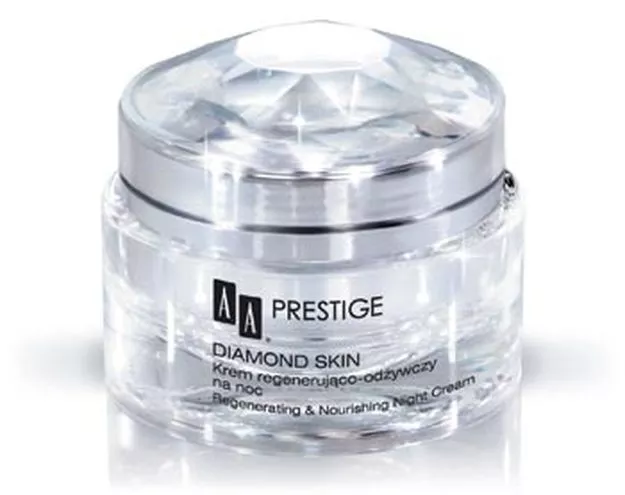 AA Prestige Diamond Skin to nowa linia kosmetyków do pielęgnacji twarzy, którą można nazwać kreatorem długowieczności. Zawarty w produktach opatentowany przeciwzmarszczkowy ekstrakt pochodzący z ryżu odpowiada za naprawę komórkową i zwiększa długość życia komórek skóry. Po miesiącu regularnego stosowania serii AA Prestige Diamond Skin twoja skóra będzie gładka i pełna blasku. Jak najczystszy diament!
