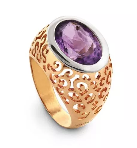 Unikatowe, bogato zdobione pierścienie z ametystem, cytrynem czy topazem przywołują wspomnienie barokowych, szlacheckich ozdób.