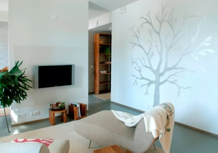 Farba i lazury TAIKA marki Tikkurila, możemy łączyć z farbami o matowym wykończeniu i szablonami, wykorzystując różnice połysku. Efektowny duet uzyskamy wybierając kolor podkładu zbliżony do koloru laserunku. Dwukrotne nałożenie lazurowej powłoki wyeksponuje jej kolor, czyniąc tę ścianę ozdobnym, dużym obrazem.