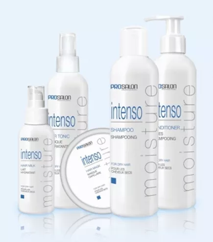 Włosy – podobnie jak całe ciało – wymagają odpowiedniego nawilżania. Niedobór wody w strukturze włosa sprawia, że fryzura gorzej się układa, jest matowa i pozbawiona sprężystości, a włosy stają się łamliwe i słabe. Misją profesjonalnej linii nawilżającej Prosalon INTENSO – dostępnej tylko w salonach fryzjerskich – jest optymalne nawilżenie włosów oraz zapewnienie im odpowiednich składników odżywczych. To dlatego preparaty serii INTENSO zostały wzbogacone proteinami soi, ekstraktem z alg i naturalnym wyciągiem z marakui.