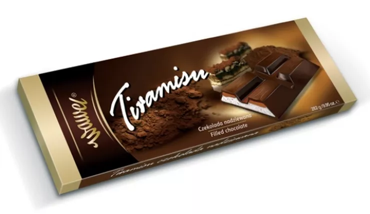 Czekolada nadziewana Tiramisu to wyjątkowe, delikatne dwuwarstwowe nadzienie, oblane pyszną deserową czekoladą. Jej smak sprawi, że przeniesiesz się do pięknych Włoch. Czekolada urzeknie każdego, kto ceni niepowtarzalny