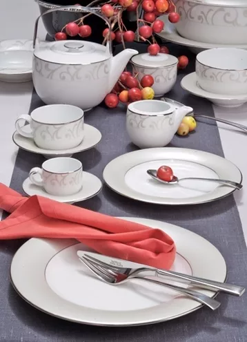Kolekcja obejmuje serwis obiadowy, do herbaty, filiżanki ze spodkiem do herbaty i espresso oraz buli nówki ze spodkiem.