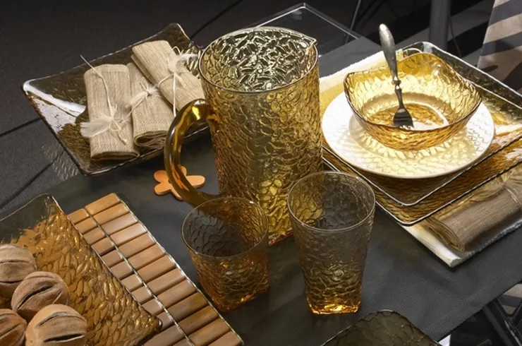Jeżeli nie mamy czasu na przygotowanie całej aranżacji, wystarczy zadbać o kilka szczegółów, aby zaakcentować jesienny charakter kompozycji. Wystarczy podać zimne przekąski, sałatki czy dodatki w salaterkach z kolekcji Ambra marki Villa Italia, które barwą przypominają promień ciepłego jesiennego słońca. Będą stanowiły piękny i wyrazisty jesienny akcent na każdym stole. Także kolekcja galanterii szklanej Matteo marki Villa Italia w bursztynowym kolorze to świetny sposób na wyczarowanie jesiennej aranżacji. Szczególnie pięknie będzie prezentowała się w połączeniu z kremową ceramiką i dodatkami utrzymanymi w kolorze czekolady.